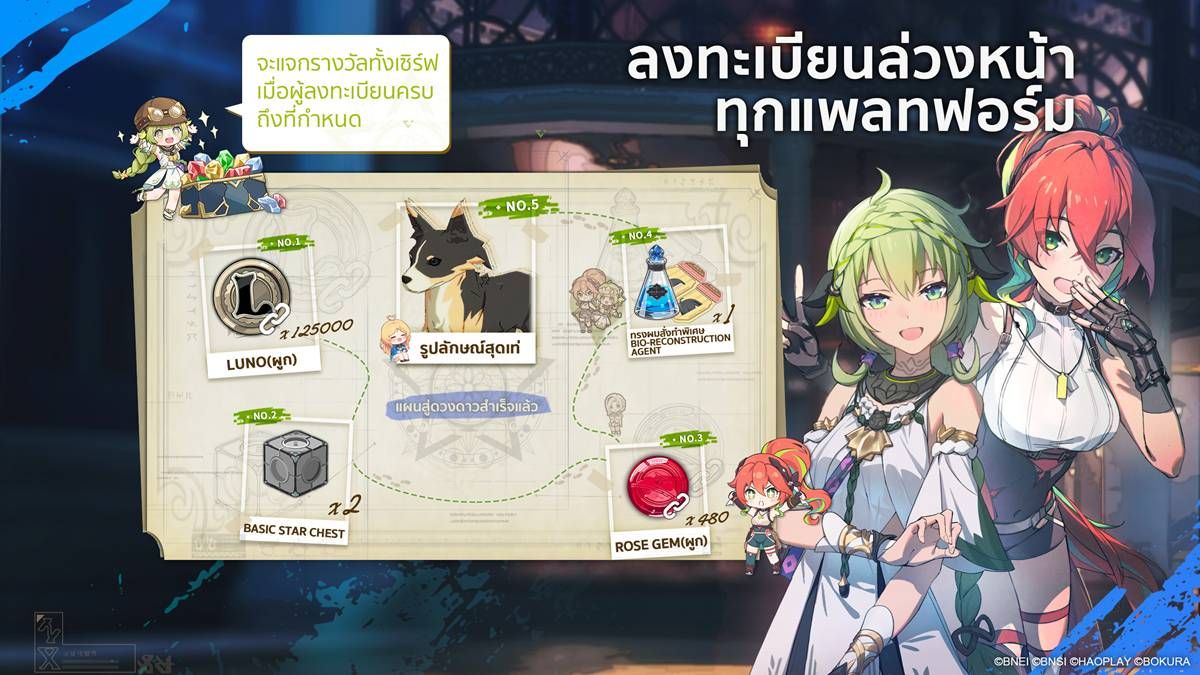 ขณะนี้สามารถลงทะเบียนล่วงหน้าได้แล้วทาง App Store, Google Play และเว็บไซต์ทางการเมื่อเกมเปิดให้บริการ ผู้เล่นทุกคนจะได้รับของรางวัลพิเศษสำหรับผู้ลงทะเบียนล่วงหน้า ซึ่งประกอบด้วยทรงผมพิเศษสำหรับการสร้างตัวละคร ไอเทมช่วยพัฒนาในช่วงเริ่มต้นการผจญภัย และพาหนะสุดพิเศษ!